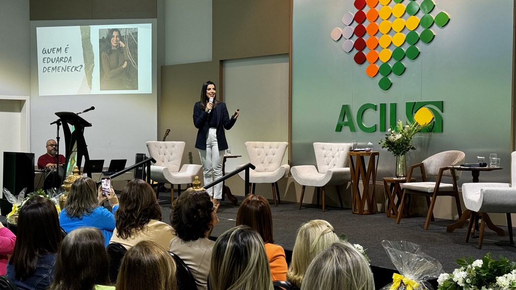 A palestra principal, trouxe o tema “Desafios da Comunicação para os Negócios”, e foi ministrada pela jornalista e apresentadora da NSC, Eduarda Demeneck. Ela destacou que a comunicação é uma habilidade que pode ser treinada e deu dicas úteis sobre postura diante da câmera, roteiro, enquadramento, entonação de voz e tom da conversa. Eduardo também deu dicas de preparação para falar em público ou em vídeo: respirar pausadamente por 15 minutos antes de começar; fazer um alongamento para expandir o tórax; e estar preparado. “Se tiver com medo, vai com medo mesmo. Mas vá preparado”, destacou ela.