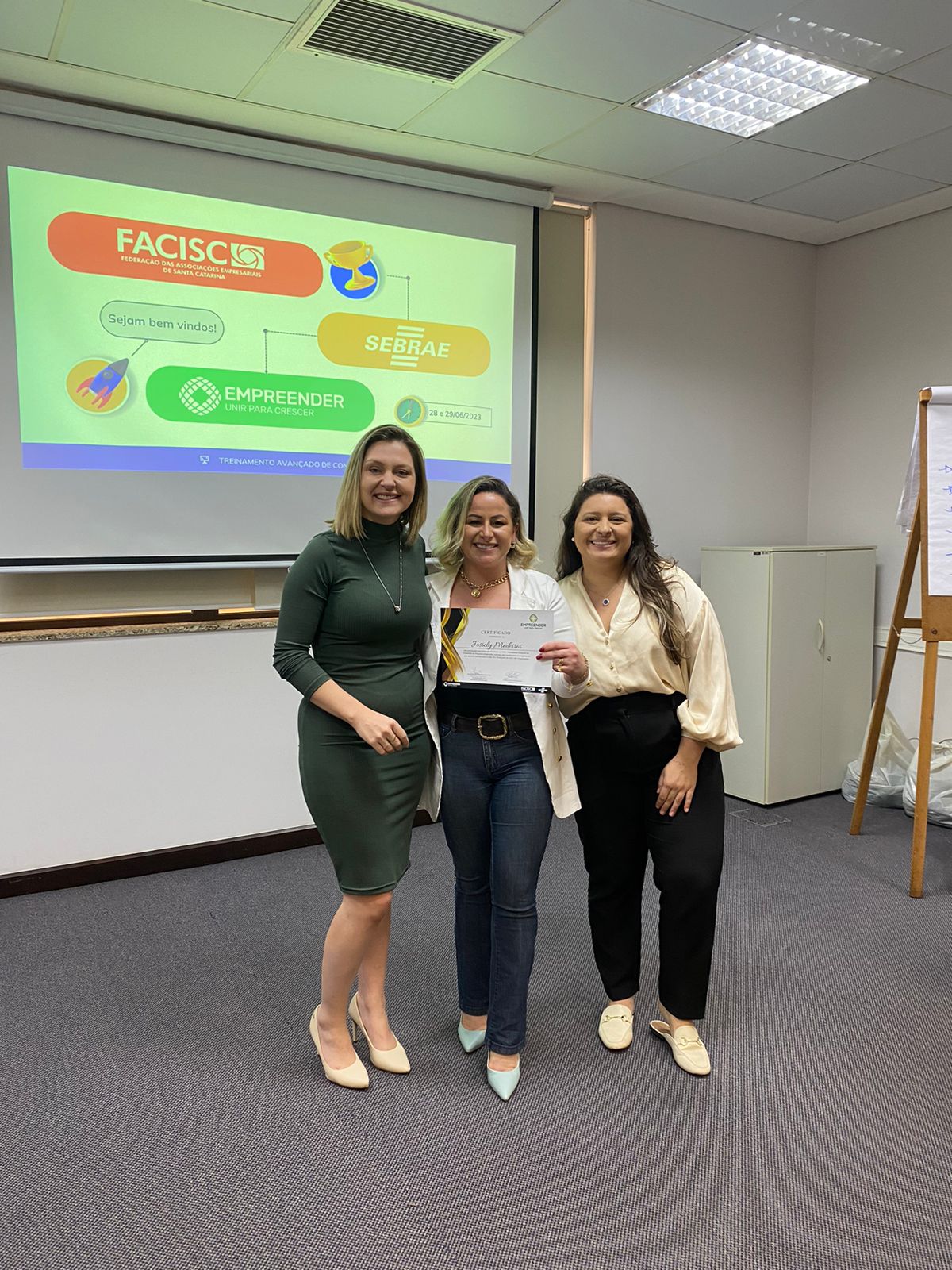 Nos dias 28 e 29 de junho, a consultora de núcleos da Associação Empresarial de Lages, Josiely Medeiros, participou do Treinamento Avançado de Consultores do Programa Empreender, promovido pela Federação das Associações Empresariais de Santa Catarina (Facisc) e realizado na sede da ACIJ, em Joinville.