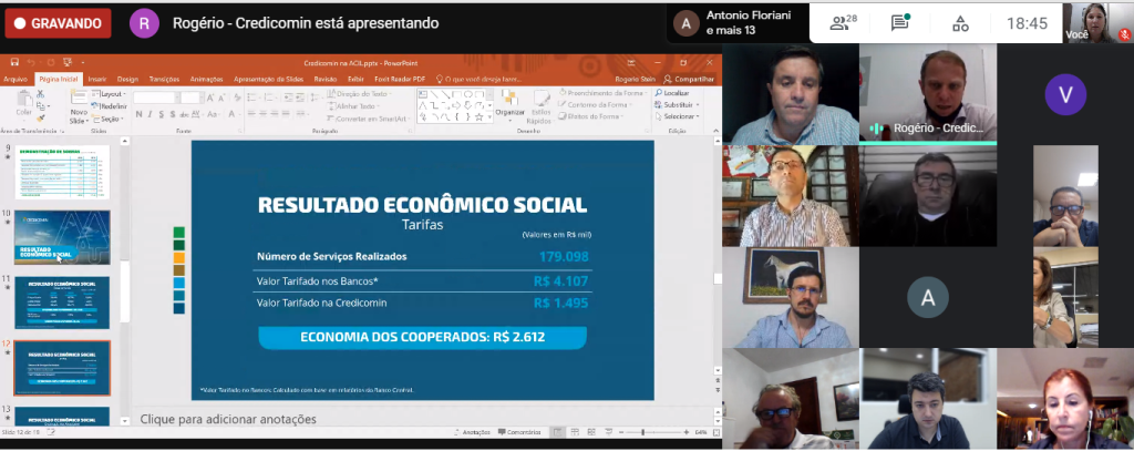 Os resultados social e econômico da Credicomin Cooperativa de Crédito foram apresentados pelo presidente da cooperativa, Nilton Alves, e o diretor executivo, Rogério Stein, aos diretores da Associação Empresarial de Lages, em reunião virtual realizada na noite da última segunda-feira (05).