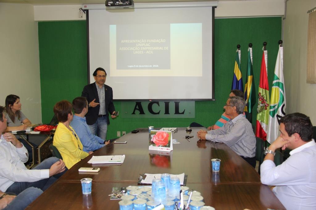 Neste mês de dezembro o empresário Carlos Eduardo de Liz, Diretor Executivo da UNIPLAC, apresentou à diretoria da ACIL um balanço de como está a situação financeira da Universidade. A ACIL, junto com as demais entidades que compõem o conselho da entidade de ensino foram os responsáveis por indicar Liz ao cargo.