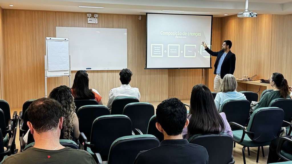 Borges explicou que a inteligência emocional consiste na capacidade de gerir as emoções de maneira adequada, no momento certo e com a intensidade necessária. Durante a palestra, abordou o conceito de autoeficácia, definido como a crença na própria capacidade de realizar tarefas e atingir objetivos. Segundo ele, essa confiança é moldada por experiências, memórias, pensamentos, comunicação e sentimentos, e influencia diretamente no desenvolvimento pessoal e profissional.