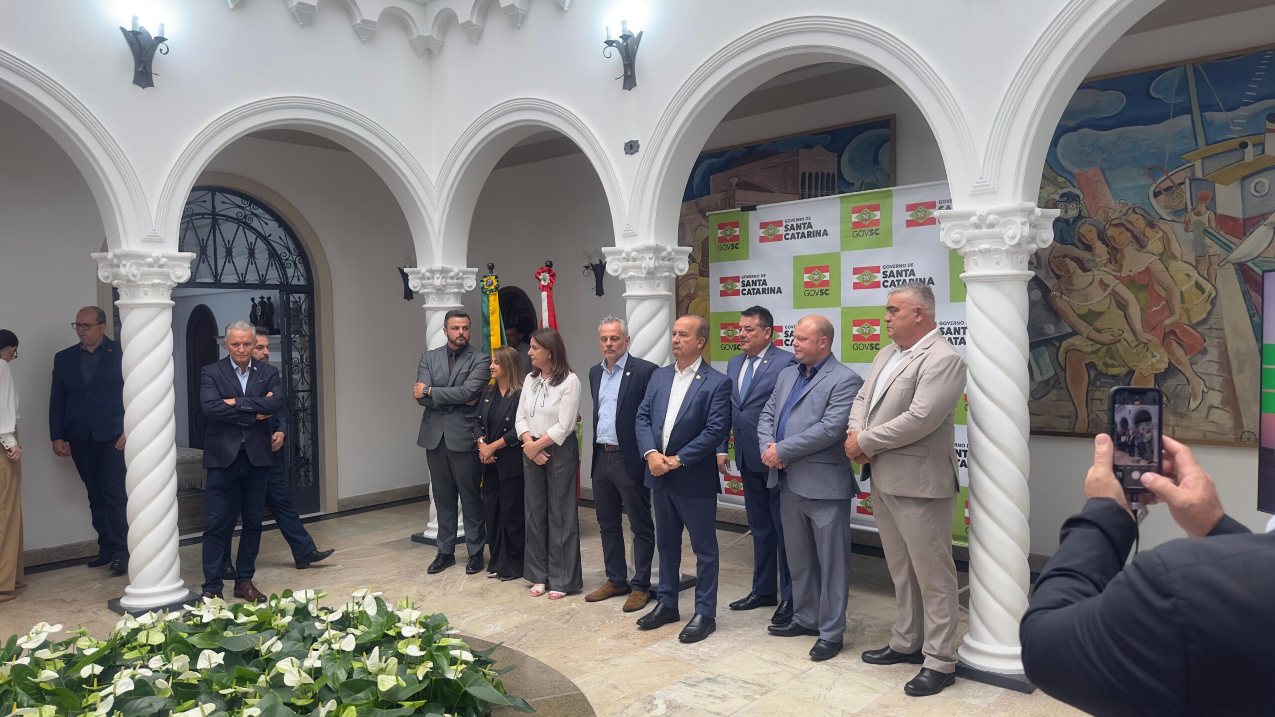 O ato realizado pelo Governador Jorginho Mello, em Florianópolis, contou com a presença contou com a presença do secretário de Portos, Aeroportos e Ferrovias (SPAF), Beto Martins, das prefeitas de Lages, Carmen Zanotto, de Correia Pinto, Lucia Ortiz, entre outros.