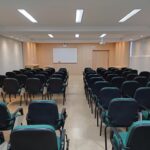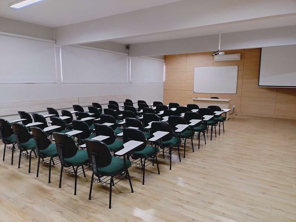 Todos os ambientes são climatizados e equipados com multimídia, projetor, telas de projeção e Wi-Fi, além de amplo estacionamento.