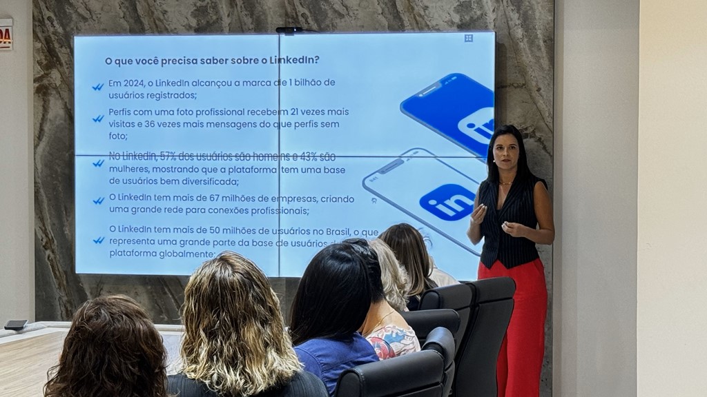 Segundo Vanessa, um perfil bem estruturado no LinkedIn é essencial para ampliar oportunidades e fortalecer a imagem profissional. Ela destacou elementos fundamentais para a otimização do perfil, como a escolha de uma foto profissional, um título claro e um resumo impactante que apresente de forma objetiva as especialidades e experiências do usuário.
