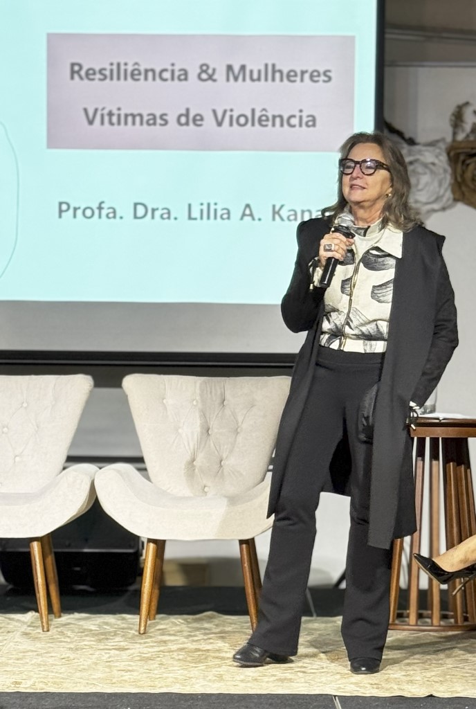 A psicóloga e professora Dra. Lilia Kanan trouxe uma reflexão profunda sobre como muitas violências começam de forma quase invisível, especialmente as psicológicas e financeiras. Segundo ela, o fortalecimento emocional é essencial para que as mulheres reconheçam esses sinais e consigam se libertar. “Superar exige resiliência, apoio e escuta ativa”, disse.