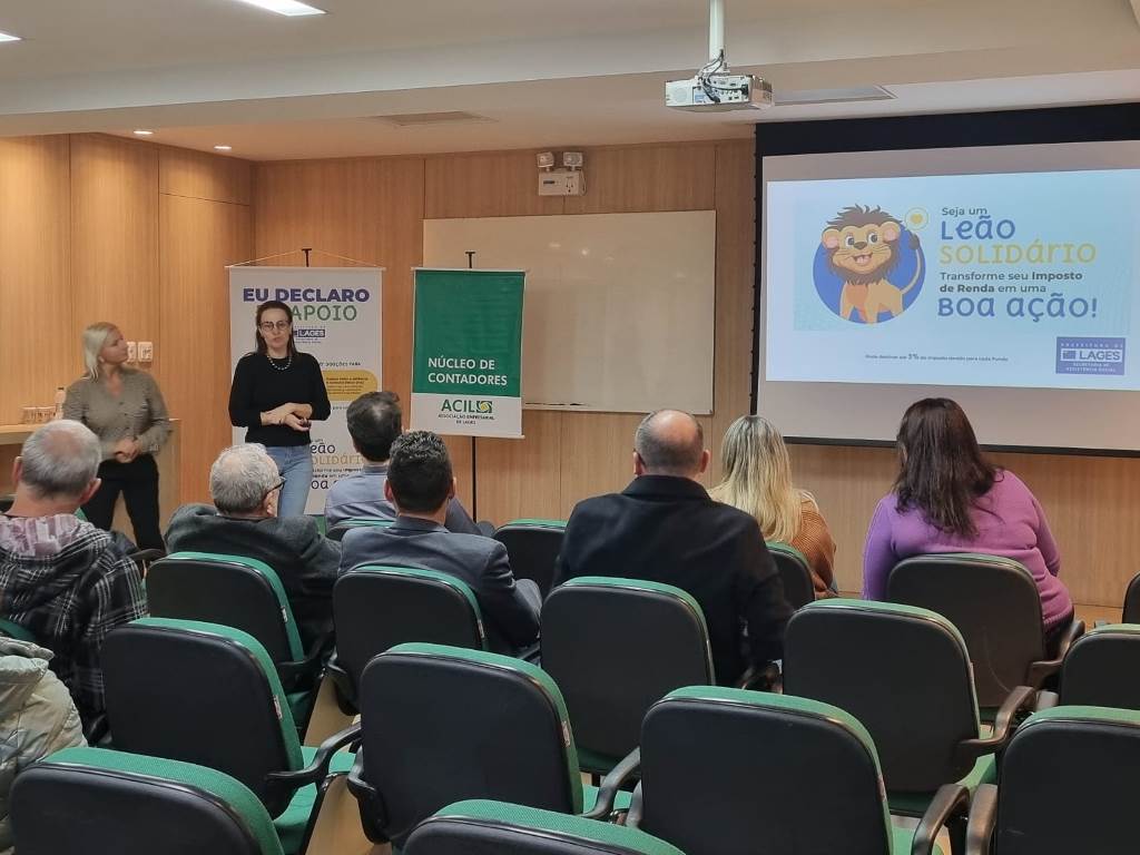 A reunião contou com a participação da assistente social Ana Paula Ribeiro e a psicóloga Ana Paula Battistella da Secretaria de Assistência Social de Lages, que apresentaram o projeto Leão Solidário, iniciativa que consiste na destinação de até 3% do IR devido a esses fundos, diretamente na declaração, de forma legal, segura e sem custo adicional para o contribuinte. Ao destinar parte do imposto a estes fundos, o contribuinte está ajudando com projetos concretos que beneficiam crianças, adolescentes e idosos de Lages.