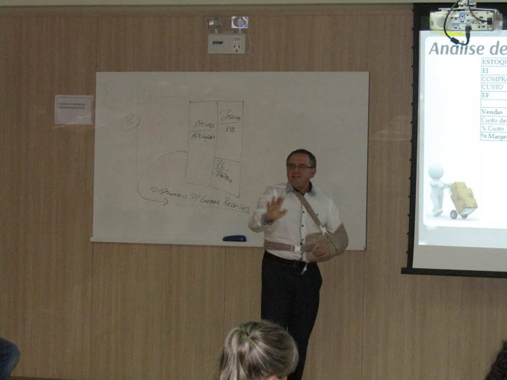 A aula foi ministrada pelo professor Luiz W. Jung, que abordou assuntos como composição e interpretação das demonstrações contábeis, planejamento tributário, analise de casos e simulações.