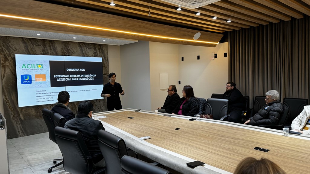 A inteligência artificial foi pauta da reunião da diretoria da Associação Empresarial de Lages realizada na noite desta segunda-feira, 26 agosto. O assunto foi abordado pelos professores Cristina Keiko Yamaguchi, Ney Kassiano Ramos e Patrick Naufel que falaram sobre os potenciais usos da inteligência artificial para os negócios.