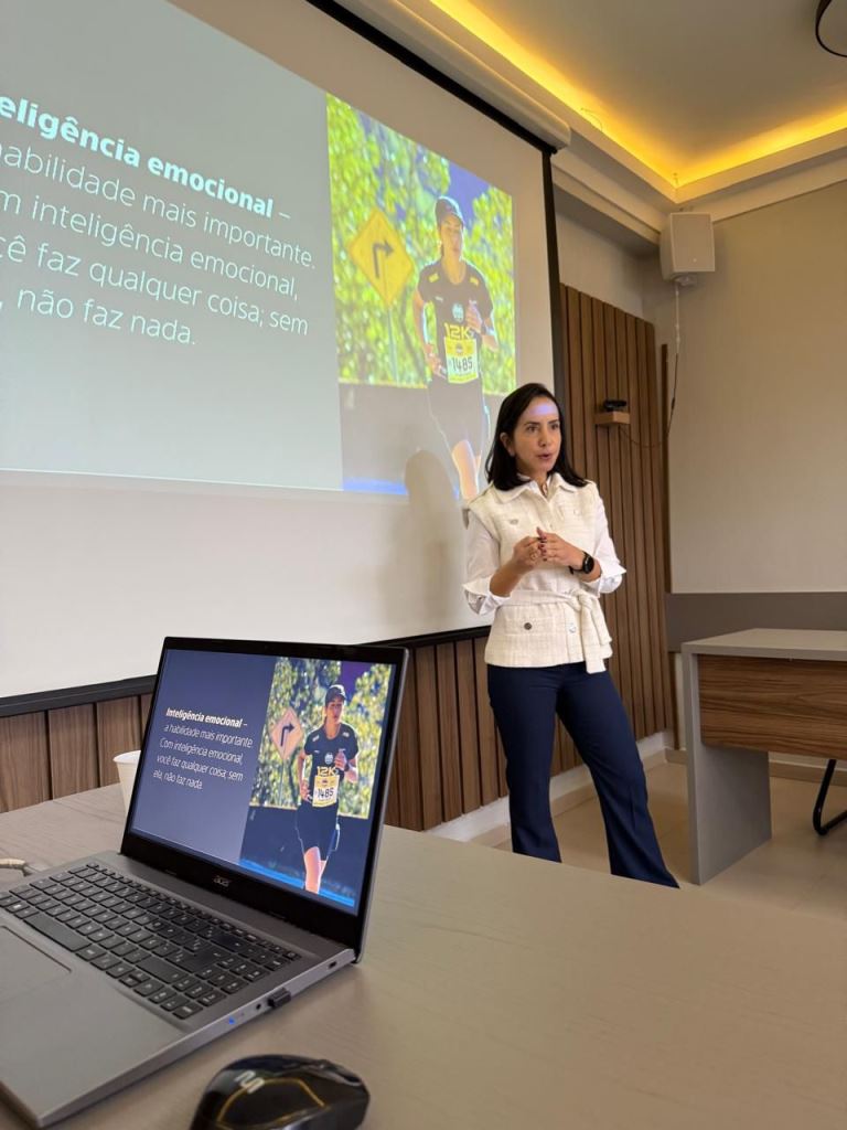A palestrante, que é sócia e cofundadora do GTS Group, trouxe reflexões inspiradas em autores como Tiago Brunet e Charles R. Swindoll, destacando que a inteligência emocional é uma habilidade essencial, mas muitas vezes negligenciada. “Com inteligência emocional, você faz qualquer coisa; sem ela, não faz nada”, afirmou. Alertou ainda sobre os impactos de uma liderança despreparada emocionalmente, “quando o líder fere, o estrago pode ser grande e atingir muitas pessoas”.