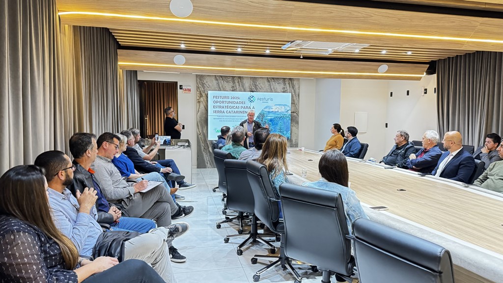 Manfroi apresentou um panorama consistente sobre a participação da Serra na Festuris, uma das maiores feiras de turismo do país, que aconteceu em Gramado e contou com 58 mil visitantes, 1.200 expositores e R$ 450 milhões em negócios estimados. Pela primeira vez, a Serra Catarinense participou com um estande próprio, fruto da parceria entre Sebrae e Amures. Também foi destaque o reconhecimento oficial da Serra como destino de natureza, charme e autenticidade. A descrição utilizada pela própria organização da Festuris reforça o potencial regional: “Poucos destinos no Brasil conseguem reunir tanta beleza, diversidade e autenticidade como a Serra Catarinense”.