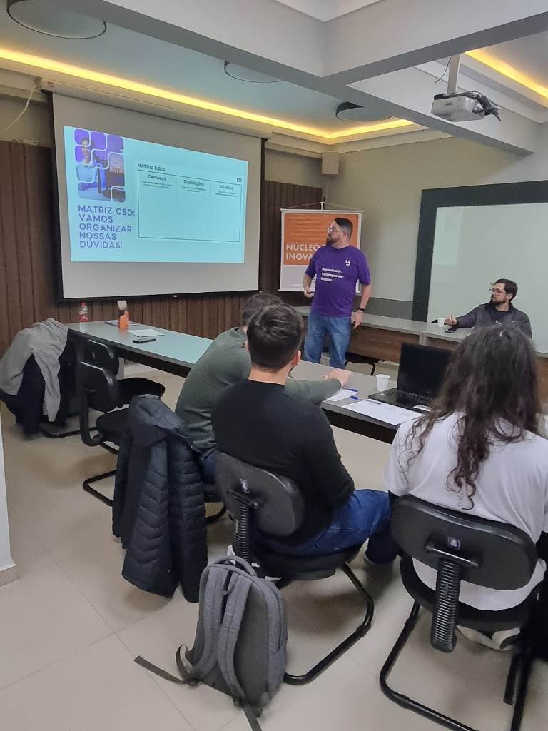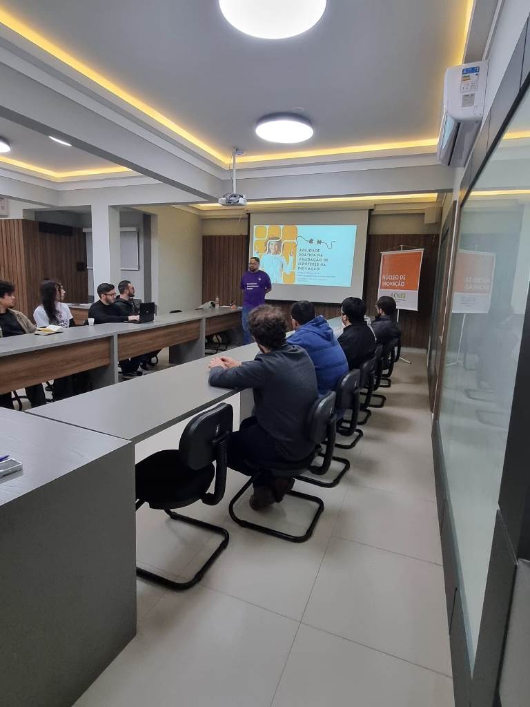 A programação mesclou conteúdo técnico e dinâmicas interativas, com atividades práticas de montagem de times, identificação de problemas reais e construção de soluções com base em hipóteses validadas. O objetivo central foi mostrar que inovar não é apenas criar algo novo, mas saber testar rapidamente, aprender com os erros e adaptar o caminho com base em dados e feedbacks concretos.